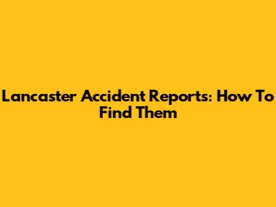 Lancaster Accident Reports: How To Find Them