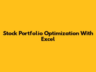 Stock Portfolio Optimization With Excel