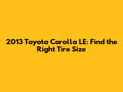 2013 Toyota Corolla LE: Find The Right Tire Size
