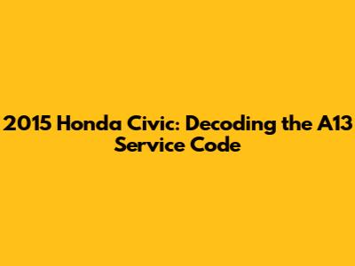 So, what does the A13 service code specifically mean for your 2015 Honda Civic? Let's break it down piece by piece.
