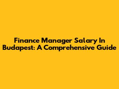 Finance Manager Salary In Budapest: A Comprehensive Guide