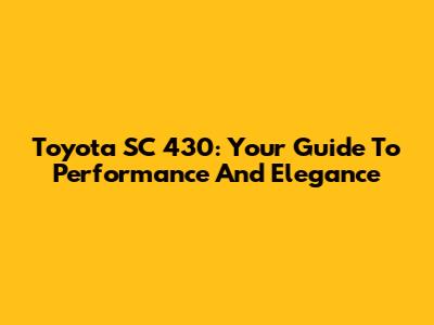 Toyota SC 430: Your Guide To Performance And Elegance