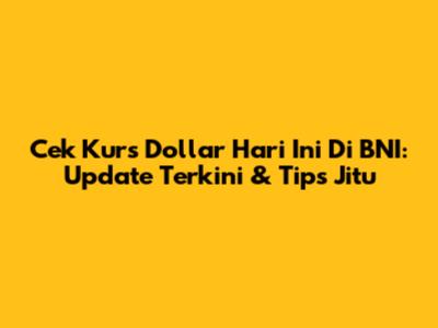 Cek Kurs Dollar Hari Ini Di BNI: Update Terkini & Tips Jitu