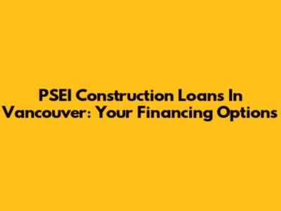 PSEI Construction Loans In Vancouver: Your Financing Options