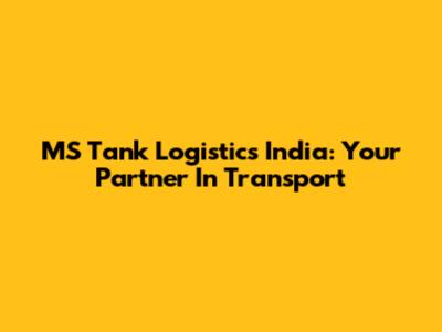 MS Tank Logistics India: Your Partner In Transport