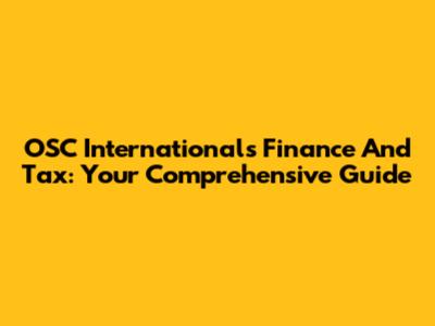 OSC International's Finance And Tax: Your Comprehensive Guide
