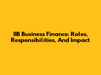 IIB Business Finance: Roles, Responsibilities, And Impact
