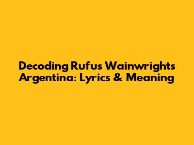 Decoding Rufus Wainwright's 'Argentina': Lyrics & Meaning