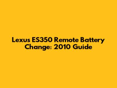Lexus ES350 Remote Battery Change: 2010 Guide