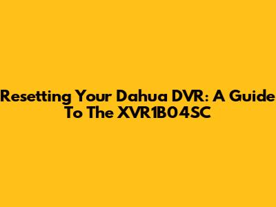 Resetting Your Dahua DVR: A Guide To The XVR1B04SC