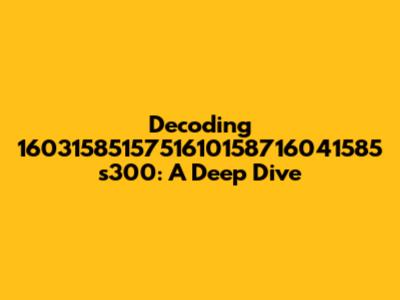 Alright guys, let's dive into this intriguing string of numbers and letters: 1603158515751610158716041585 s300. At first glance, it might seem like a random jumble, but let’s break it down and see if we can make some sense of it. This comprehensive exploration aims to unravel the potential meanings, contexts, and applications associated with this specific alphanumeric sequence. Understanding the composition and possible origins of this string is crucial for anyone encountering or working with it. So, buckle up, and let's get started!