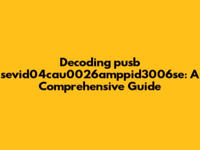Understanding the Basics: What is pusb sevid04cau0026amppid3006se?