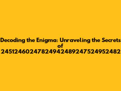 Hey guys, let's dive headfirst into a real head-scratcher: 24512460247824942489247524952482. Yeah, it looks like a random string of numbers, right? But hold on to your hats, because we're about to embark on a journey to decode this numerical puzzle. In the world of data, sometimes, seemingly random numbers hold the keys to understanding complex systems, identifying patterns, or even uncovering hidden messages. Our exploration will cover the possible interpretations and meanings that 24512460247824942489247524952482 might represent. Is it a unique identifier? A timestamp? Or perhaps a mathematical expression? Or could it be something entirely different? By examining its characteristics, potential contexts, and associated fields, we'll try to get a better understanding. We're going to break down the number, explore where it might pop up, and think about what it could actually mean. Along the way, we'll encounter different theories, use practical examples, and unravel the possibilities, making sure everything is clear, fun, and easy to understand. So, grab a coffee, sit back, and let's decode this mysterious number together. We'll be looking at all the possibilities, from basic data formats to more complex coding systems. We'll check out potential contexts to see where this number might show up. We'll also consider how it might be used to encode information. Get ready to explore this numerical enigma, and by the end, you'll have a much better idea of what 24512460247824942489247524952482 could represent. Trust me; it's going to be a fun ride! This number, at first glance, appears to be just a collection of digits. It's easy to dismiss it as an arbitrary sequence. However, in the realm of data and information science, such sequences often hold more meaning than what meets the eye. These numerical strings can be identifiers, codes, timestamps, or components of larger data structures. In this exploration, we'll look at the possible interpretations of this number, examining how it might be used within various contexts. We'll also examine the fields in which it might appear, like IT, finance, and cryptography. We'll learn how to approach similar numerical puzzles, gaining a deeper appreciation for the role of data in the modern world. Remember, every digit can be a clue. The journey to understanding this number will be filled with insights and discoveries.