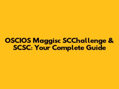 OSCIOS Maggisc SCChallenge & SCSC: Your Complete Guide