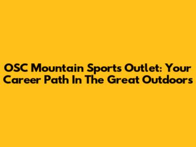 OSC Mountain Sports Outlet: Your Career Path In The Great Outdoors