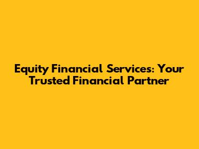 Equity Financial Services: Your Trusted Financial Partner