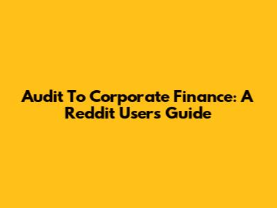 Audit To Corporate Finance: A Reddit User's Guide