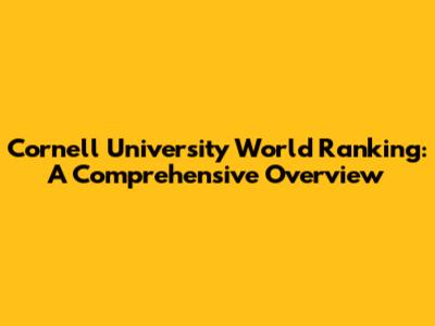 Cornell University World Ranking: A Comprehensive Overview