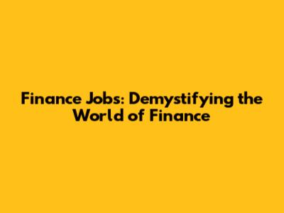 Unveiling the Diverse World of Finance Jobs