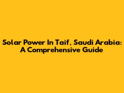 Solar Power In Taif, Saudi Arabia: A Comprehensive Guide