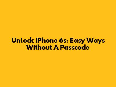 Unlock IPhone 6s: Easy Ways Without A Passcode