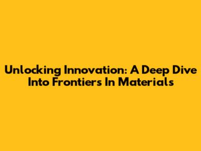 Unlocking Innovation: A Deep Dive Into Frontiers In Materials