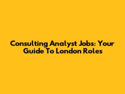 Consulting Analyst Jobs: Your Guide To London Roles