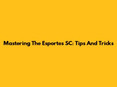 Mastering The Esportes SC: Tips And Tricks