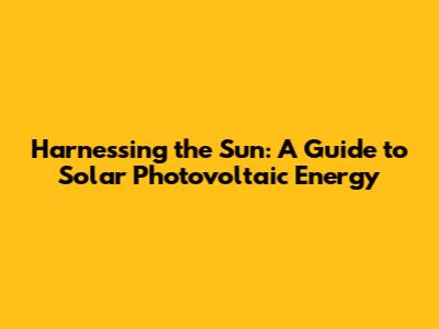 Understanding Solar Photovoltaic Energy: The Basics