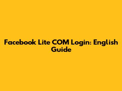 Facebook Lite COM Login: English Guide