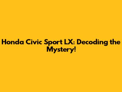Honda Civic Sport LX: Decoding The Mystery!