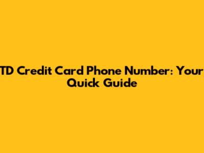 TD Credit Card Phone Number: Your Quick Guide
