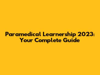 Paramedical Learnership 2023: Your Complete Guide