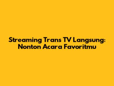 Streaming Trans TV Langsung: Nonton Acara Favoritmu
