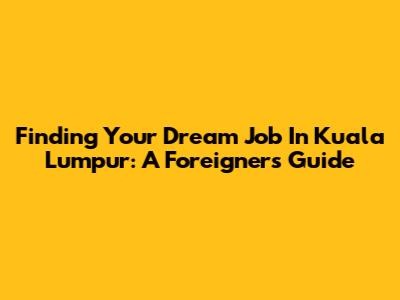 Finding Your Dream Job In Kuala Lumpur: A Foreigner's Guide