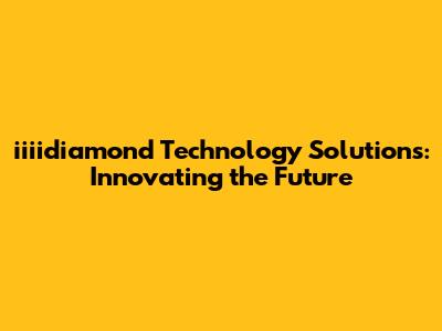 The Future of iiiidiamond Technology Solutions