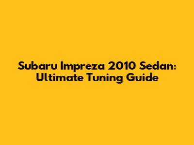 Subaru Impreza 2010 Sedan: Ultimate Tuning Guide