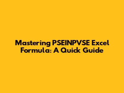 Mastering PSEINPVSE Excel Formula: A Quick Guide