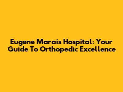 Eugene Marais Hospital: Your Guide To Orthopedic Excellence