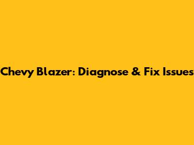 Chevy Blazer: Diagnose & Fix Issues