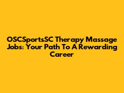 OSCSportsSC Therapy Massage Jobs: Your Path To A Rewarding Career