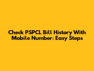 Check PSPCL Bill History With Mobile Number: Easy Steps