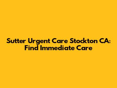 Sutter Urgent Care Stockton CA: Find Immediate Care
