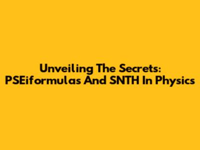 Unveiling The Secrets: PSEiformulas And SNTH In Physics