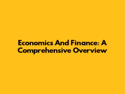 Economics And Finance: A Comprehensive Overview