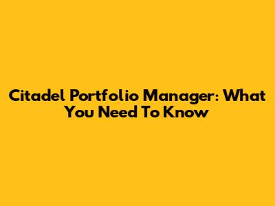 Citadel Portfolio Manager: What You Need To Know