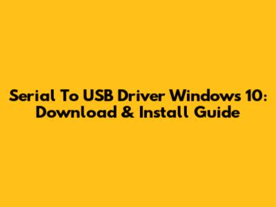 Serial To USB Driver Windows 10: Download & Install Guide