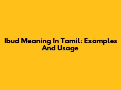 Ibud Meaning In Tamil: Examples And Usage