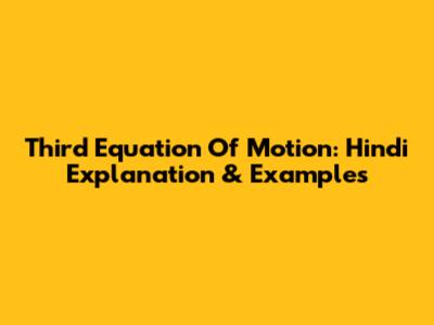 Third Equation Of Motion: Hindi Explanation & Examples