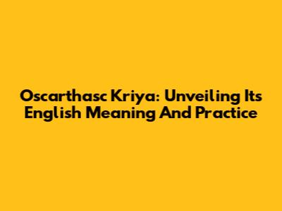 Oscarthasc Kriya: Unveiling Its English Meaning And Practice